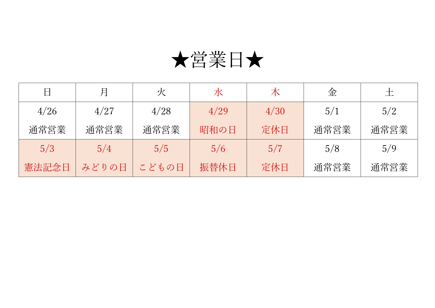 | 13:30~17:30 | ● | ● | ● | / | ● | ★ | ★ |
